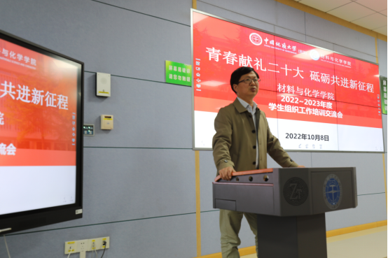 会议的最后,学院党委副书记余江涛老师做总结讲话,他从工作标准、工作内容、工作要求三个方面与学生干部们进行了交流分享。