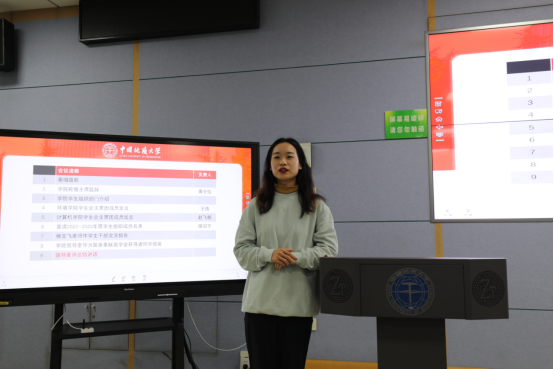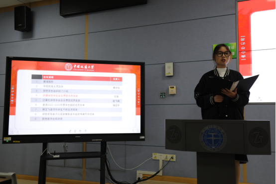 办公室孙梦宇主持,参加会议的有学院党委副书记余江涛老师,2020级辅导员侯亚飞老师,2022级辅导员李桂娇老师,环境学院学生会主席团成员王倩,计算机学院学生会主席团成员赵飞越以及材化学院全体学生组织成员。