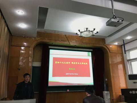 院党委书记吴太山做“贯彻十九大精神,做好学生支部建设”主题报告,为全体学生支委干部讲解十九大精神。他以问题为导向,从大会主题入手,讲明“初心”和“使命”的意义及十九大报告的意义,强调我们应时刻牢记中国共产党的初心和使命,充分认识到党的十八大以来党和国家事业之所以取得如此大的成就,归功于习近平新时代中国特色社会主义理论的正确引领。他从三个方面介绍了中国特色社会主义进入了新时代的依据,要求从“八个明确”、“十四个坚持”弄懂习近平新时代中国特色社会主义思想的精神实质、丰富内涵及重要意义。