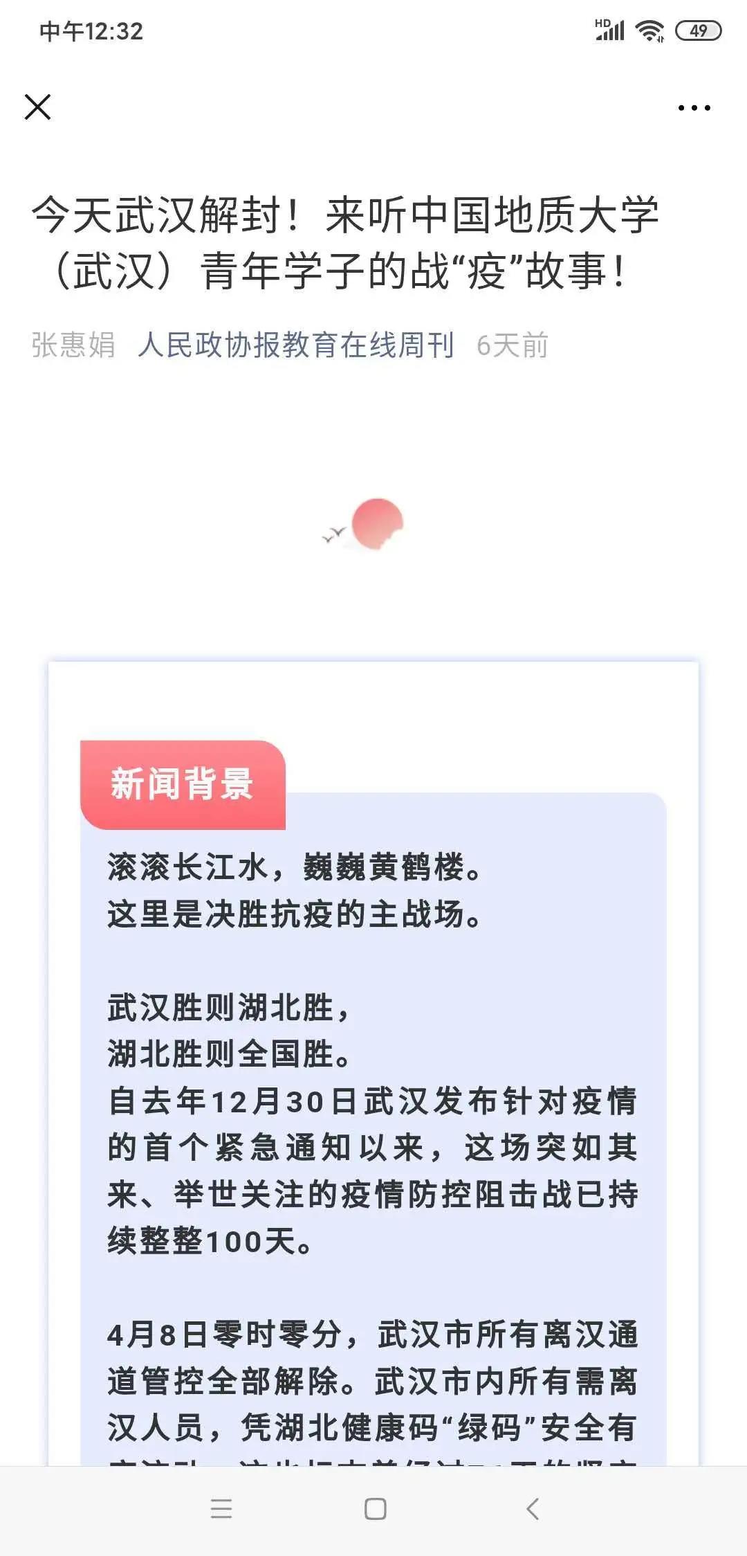 应用化学专业卓越计划班在读本科生。其事迹受到人民网(2月14日)、光明网(2月17日)、中国青年报(2月18日)、中国教育报(2月14日)、中国青年网(2月13日)、湖北日报(2月12日)等媒体广泛报道。