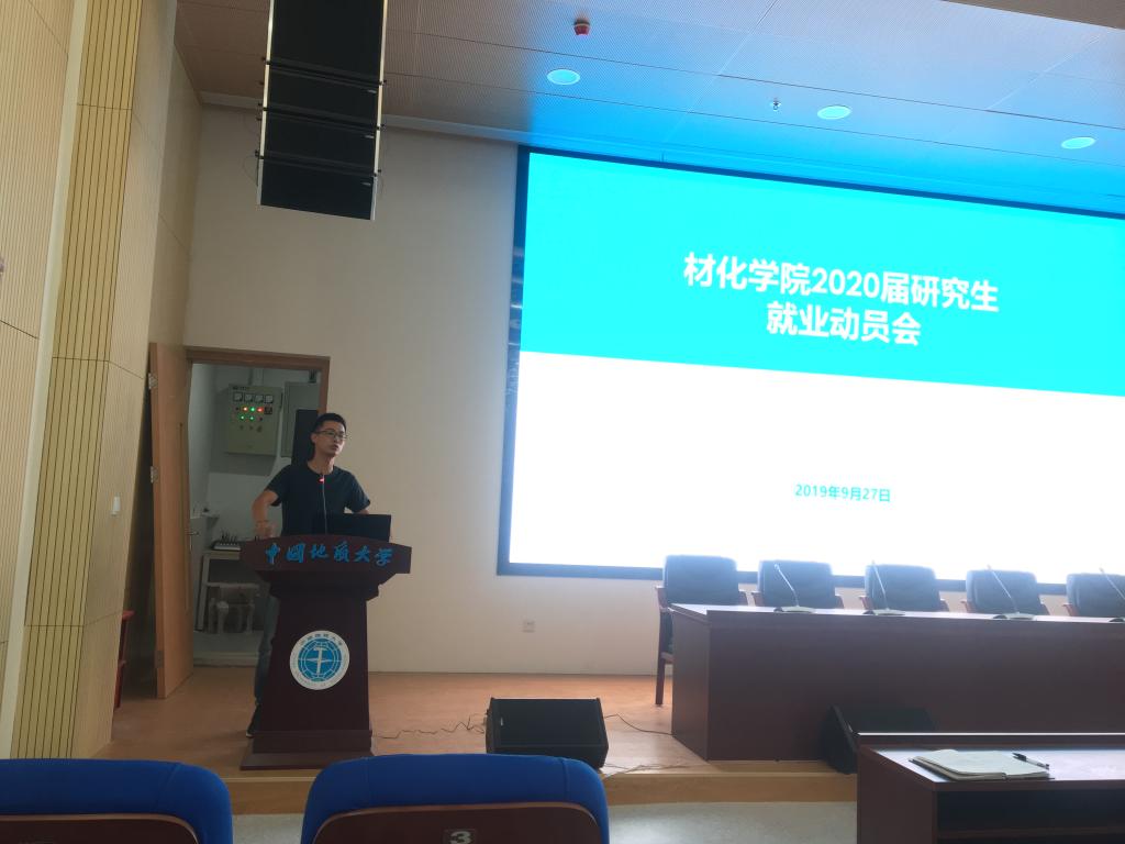 为进一步做好2020届研究生毕业生就业工作,2019年9月27日下午15:00,材化学院于110会议室举办2020届研究生毕业生就业动员大会。出席本次会议的有中文字幕av 党委副书记余江涛、研究生辅导员唐伟,2017级硕士研究生以及部分博士生。