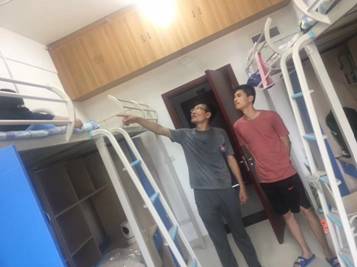 搬迁工作刚刚结束,院领导和院办老师随即走进学生宿舍,看望慰问搬入新宿舍的同学们。老师们不仅详细询问了搬迁过程中是否出现困难、目前生活中遇到的麻烦等问题,也认真查看宿舍的角角落落,针对个别宿舍存在保障需求没有及时到位的情况,老师们作了详细的解释,希望大家克服困难,把精力更多地投入到学习生活中,同时贴心地提醒同学们要及时吃饭补充体力,多喝水防中暑,另外在新校区也要提高安全防范意识。