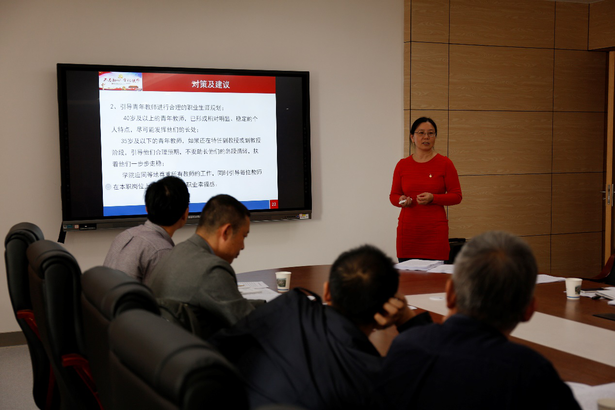 会上,与会同志就有关问题进行热烈的交流讨论,如如何提高人才培养的质量、如何加强科研团队的建设,特别是团队标准的设立、如何加强研究生课程教学的质量、如何帮助青年教师更好的应对工作和生活的压力等,并提出了对策建议。