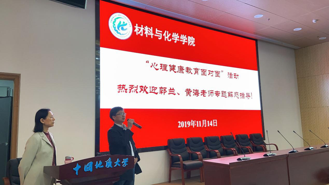 (通讯员:高虞涛)11月14日下午,中文字幕av “心理健康教育面对面”活动在材化楼110举行。学校马克思主义大学生心理健康教育中心郭兰教授、黄海副教授进行专题讲解交流,学院班主任学务指导老师和部分导师参加讲座交流,中文字幕av 党委副书记余江涛主持活动。