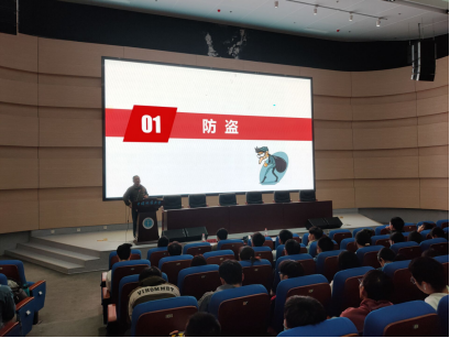 会议第二项保卫处周日恒老师以防盗、防骗为主题给大家进行了一场安全知识讲座,主要讲解了校园常见的盗窃、诈骗方式和案例,提醒大家在平时生活学习过程中一定要注意保护好自己的人身以及财产安全。