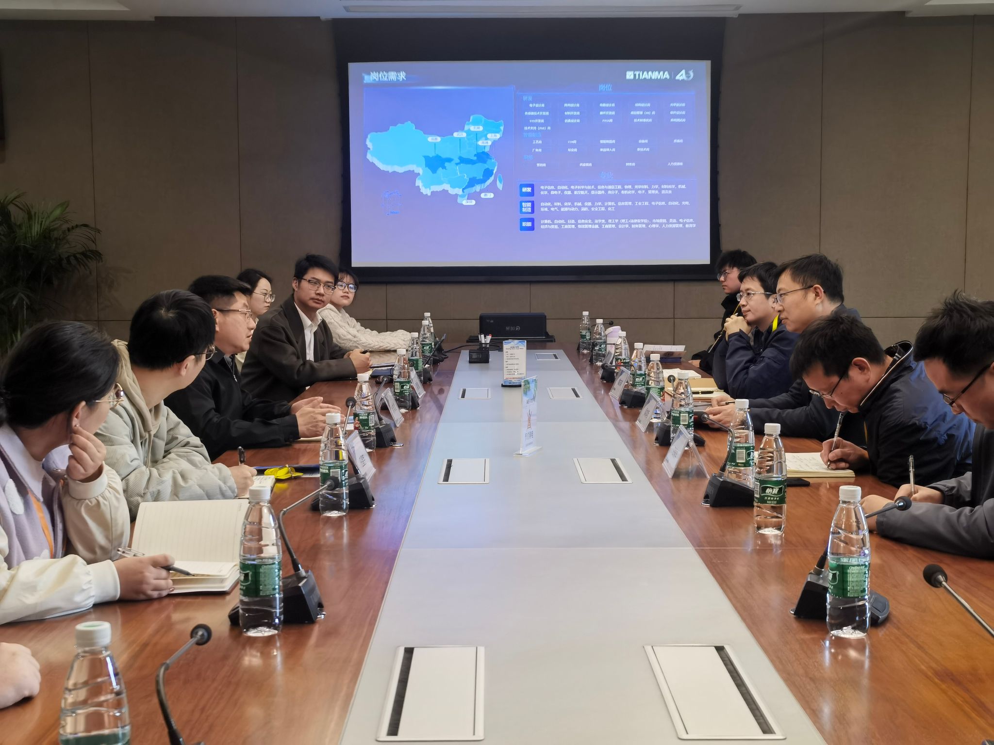 毕业生就业情况和专业建设整体情况,强调学校与两家高新企业地理位置相近,研究领域相通,合作基础得天独厚,表示希望通过本次走访加强院企联系,在学生就业、科技创新、人才培养、成果转化等方面深化合作。
