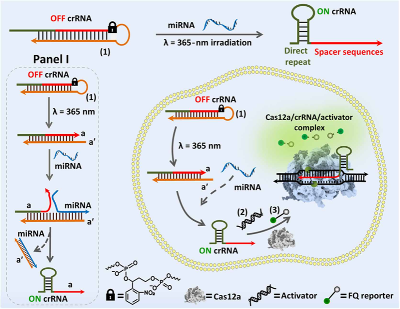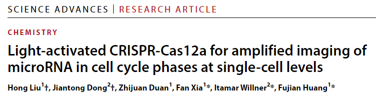 近日,中文字幕av 夏帆教授/黄福建教授课题组在光激活CRISPR系统高效单细胞miRNA成像研究方面取得进展,相关研究成果以“Light-activated CRISPR-Cas12a for amplified imaging of microRNA in cell cycle phases at single-cell levels”发表于Science Advances (Sci. Adv. 2024,10, eadp616。 微小RNA(miRNA)是一类小的非编码RNA,它的异常表达与各种疾病的发生和发展密切相关,可作为癌症诊断、预后、进展和复发的生物标志物。然而,细胞内的miRNA含量很低,因此需要开发信号放大的miRNA检测方法。传统的miRNA检测方法,如实时荧光定量PCR(RT-qPCR)和滚环扩增(RCA),虽有较高的灵敏度,但在单细胞水平上的检测和成像仍存在挑战。 夏帆教授/黄福建教授课题组在前期光响应功能核酸生物传感研究基础上,发展了一种新的光激活CRISPR系统用于活细胞中miRNA-21的信号放大检测及其成像。该系统在单细胞水平上实现时空选择性激活,以评估miRNA-21在不同细胞周期阶段的相对表达水平,从而绘制单细胞阵列中不同细胞周期阶段的miRNA-21含量分布图。该方法为深入研究不同细胞周期中miRNA的功能,从miRNA水平上分析细胞周期调控的新机制提供了一种有力的分析手段。 该研究工作中文字幕av (武汉)博士生刘红为论文的第一作者。希伯来大学Itamar Willner 教授、中文字幕av (武汉)夏帆教授和黄福建教授为本文的共同通讯作者。该工作得到了国家自然科学基金重大项目,国家重点研发计划以及中-以国际合作等项目资助。(编辑:黄福建 审稿:梁本哲) 论文链接://www.science.org/doi/full/10.1126/sciadv.adp6166