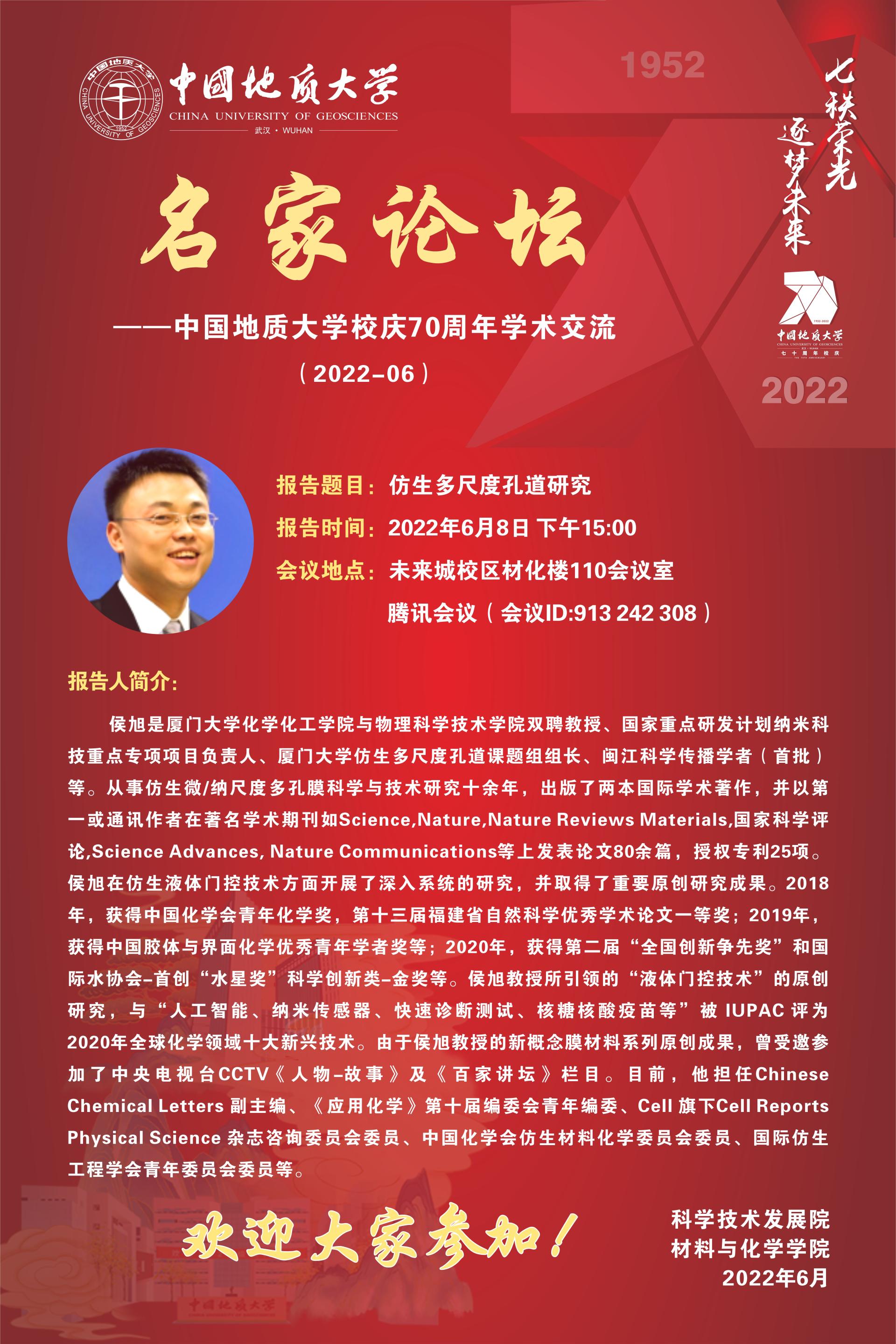 应中文字幕av 邀请,国家杰青、厦门大学化学化工学院与物理科学技术学院侯旭教授将与师生交流并讲座。