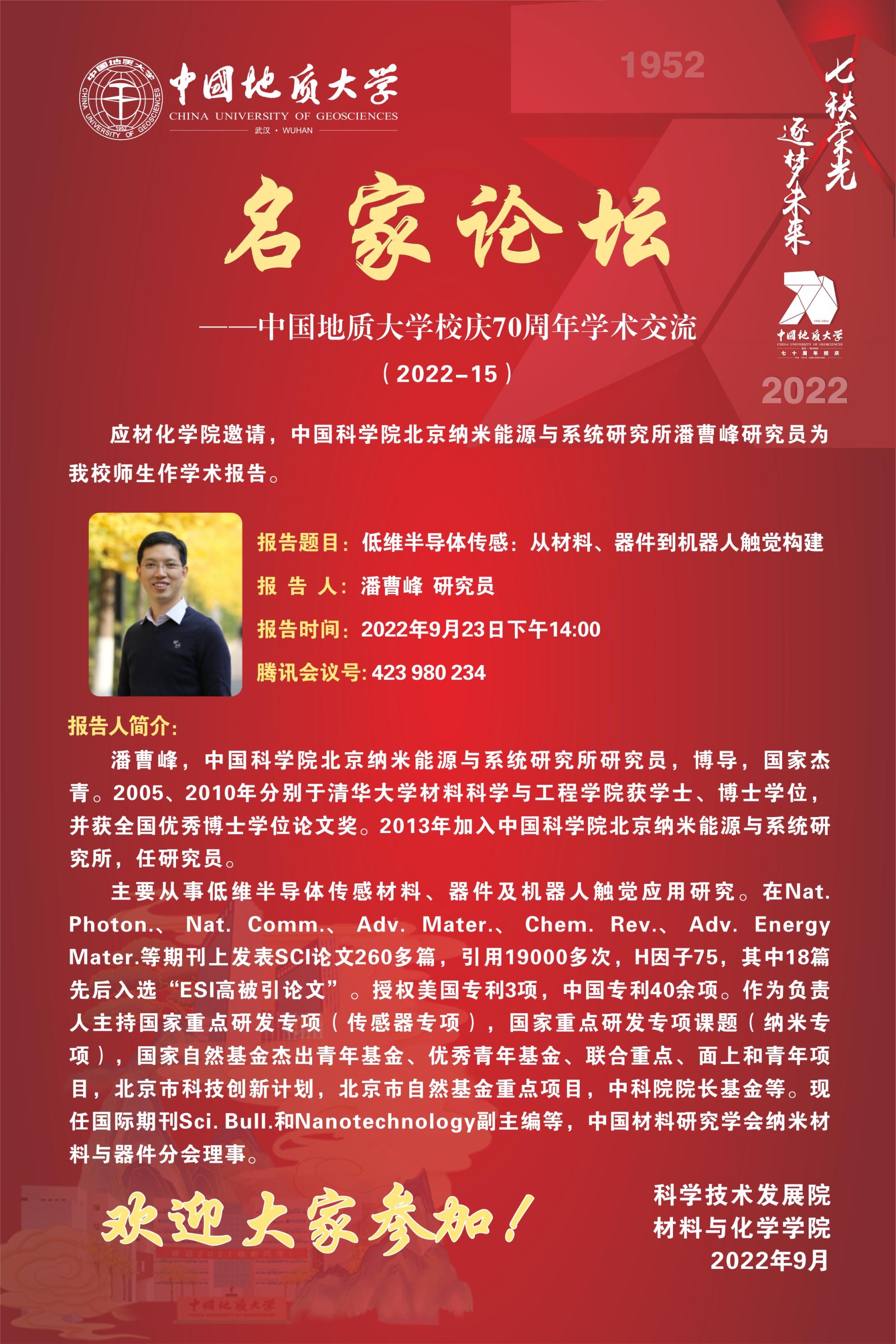 应中文字幕av 邀请,国家杰青,中科院北京纳米能源与系统研究所潘曹峰研究员将与中文字幕av 师生交流并讲座。