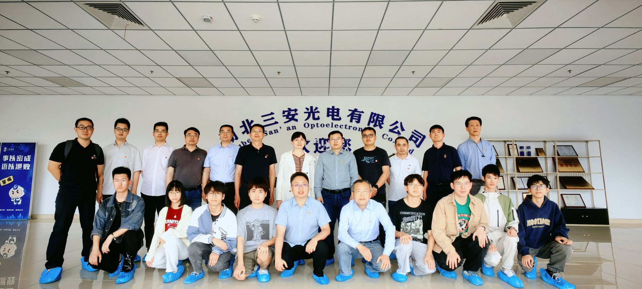 在三安光电公司,同志们走进公司展厅生产研发产线进行参观讲解员介绍下,详细了解企业文化、企业战略员工培养以及半导体、显示屏等主营产品研发情况。随后学院师生与企业高管、校友代表进行座谈,双方就产教融合、在校生培养、毕业生发展、校企合作等进行深入交流