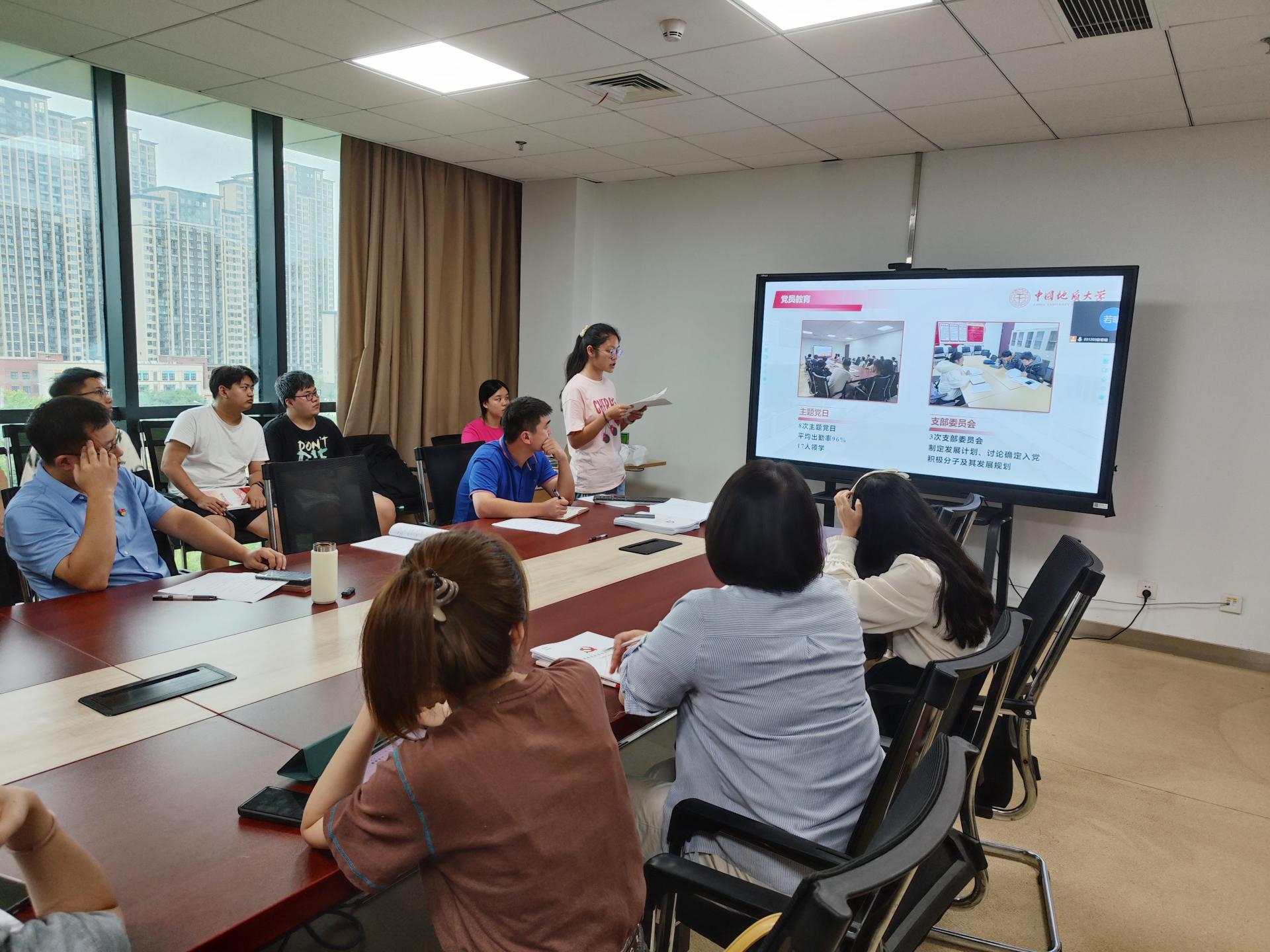1202201党支部书记程瑶结合支部建立长效学习机制、落实责任机制、加强党员之间交流等做法分享了所在支部在党员的教育、管理、监督、凝聚等方面工作经验。1202102党支部书记宋京阳围绕如何发展合格党员分享了所在支部依托主题党日团结凝聚非党员同学特别是入党积极分子、强化思想引领以及扎实做好入党材料的审核把关等方面的做法与经验。