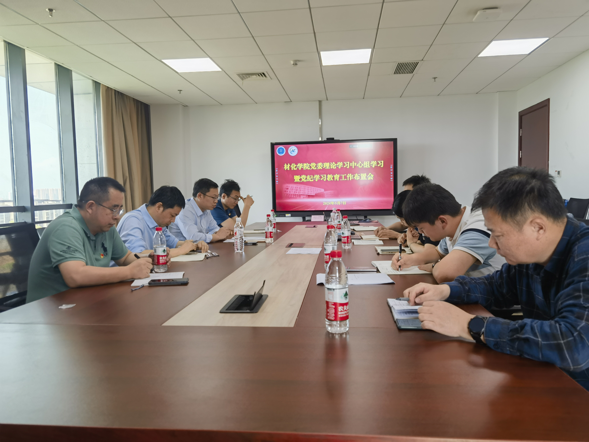 57日下午,材化学院党委在新校区教学服务中心611会议室召开党委理论学习中心组学习暨党纪学习教育布置会。院党委书记梁本哲主持会议,学院党委理论学习中心组成员、院领导班子成员学院分团委书记参加学习。