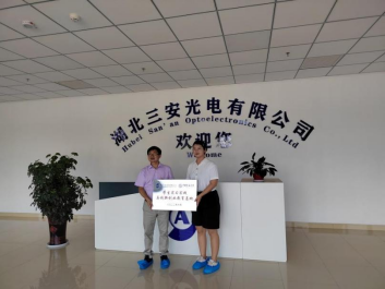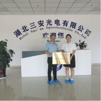 尽管骄阳似火,却依然无法阻挡同学们实习的热情。抵达目的地后,湖北三安光电有限公司人事部门的相关负责同志向材化师生的到来表示了热烈的欢迎,并带领同学们观看公司宣传片。在科技展厅里,企业工程师向同学们简单介绍了晶棒经研磨形成衬底,如何通过外延工序制作芯片,并最终生成下游产品的总过程,详细介绍了各种生产车间的主要功能。