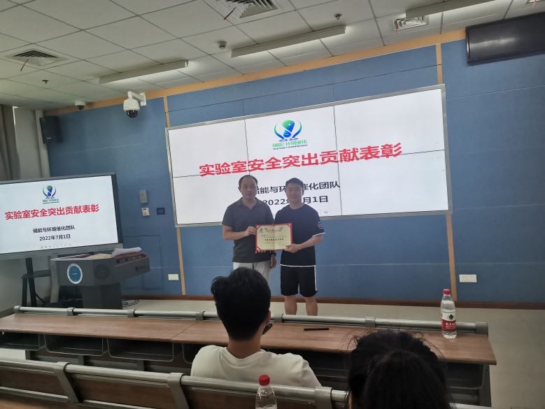 首先,EES常务负责人夏开胜老师总结了近日课题组安全周活动所取得的各项成果,并重点表彰了博士研究生张余祥同学在实验室安全工作中所做的突出贡献。