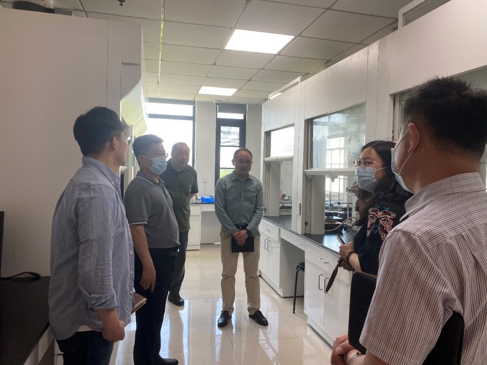 教学实验中心调研实验室管理及建设工作。学院党委书记黄菊、学院副院长公衍生、教学实验中心主任夏开胜、中心支部书记周森老师陪同调研。王校长一行现场查看了有机化学实验室、分光光度计室、材料性能表征实验室等教学实验室建设与运行情况。