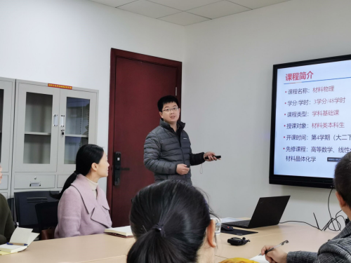 第一期教师工作坊的主题是第二届全国高校教师教学创新大赛的备赛。周炜老师代表《材料物理》课程组介绍了在去年参与首届大赛的备赛经验,他在工作坊中和各位青年教师分享了《材料物理》课程教学中存在的问题,以及创新改革的内容、措施和所取得的成效。