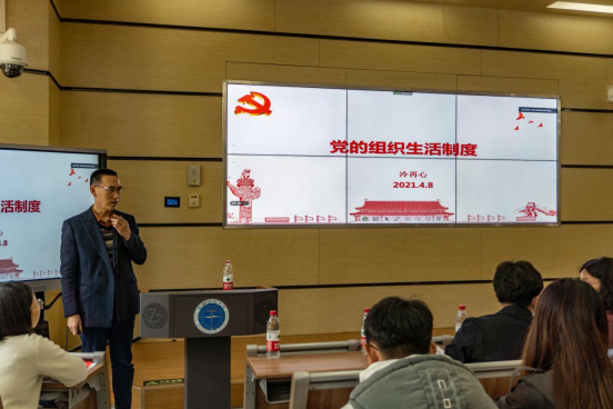 活动仪式后,校党委组织部副部长冷再心讲了主题为“党的组织生活制度”的专题党课。党课从“严格党的组织生活制度、落实‘三会一课’制度、提高‘三会一课’质量”三个方面详细地介绍党的组织生活制度,针对学生党支部开展“三会一课”中存在的问题进行了剖析,并从“提高认识、落实责任,增强素质、把握内涵,完善机制、加强考核,认真坚持、发展和不断创新“三会一课”制度”四个方面给出了提升“三会一课”质量的对策。