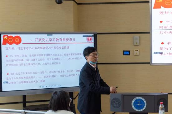 (武汉)学生工作处(部)关于在全校学生中深入开展庆祝建党100周年和党史学习教育的实施方案》进行了详细的介绍。并从“党史论著‘精学’、主题活动‘导学’、理论宣讲‘助学’、党史知识竞赛‘促学’、红色文艺‘辅学’、实践服务‘励学’、骨干典型‘引学’”七个方面介绍了学院党史学习教育活动方案,并鼓励同学们在学中做,在做中学,以学促进,知行合一,做到“学党史、悟思想、办实事、开新局”。