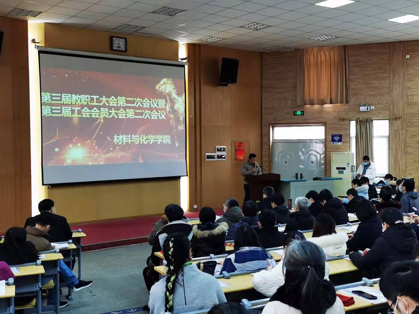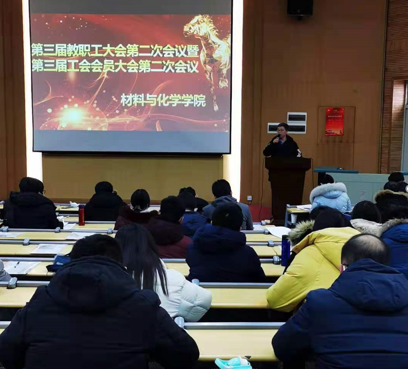 (材化学院分工会沈毅李飞)2021年1月10日下午,材化学院第三届教职工大会第二次会议暨第三届工会会员大会第二次会议在教三楼109隆重召开。王华副校长、校工会副主席杨世清及材化学院全体教职工参加大会。