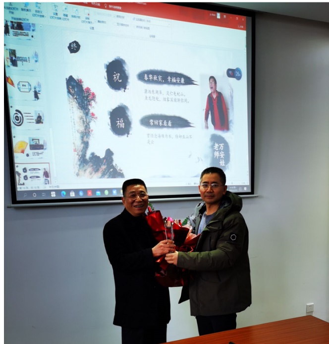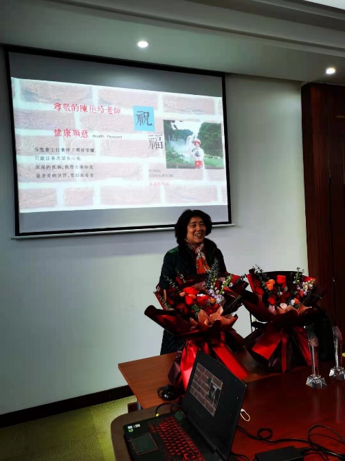接受颁奖后,退休的老师逐一发言。他们感叹时间悄然流逝,虽芳华已逝,但壮心不已,他们表态会一如既往地关注材化的发展;感谢学院领导的关心!感谢各位老师的帮助和祝福!希望材化学院的老师们将院系在教学、科研和管理工作中好的优良传统发扬光大!祝福学院明天更加美好,新老同事事业成功,健康幸福!