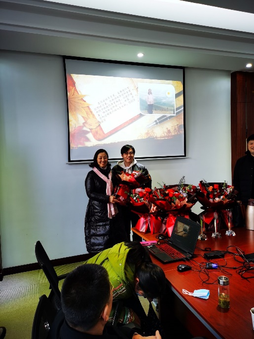 老师们在东区综合楼B708隆重集会,为2020年光荣退休的陈艳玲、魏昌华、吴超、万安娃、魏青和王传金6位老师举行“终身成就奖”颁奖典礼。大会由材化学院工会主席沈毅主持,出席大会的领导有院长夏帆教授,黄菊书记及材料系、化学系和实验中心主任、副主任。夏帆院长在致辞中充分肯定了6位老师在几十年的工作中为学院在教学、科研和学科建设中做出的杰出贡献。夏院长饱含深情的说到:几十年来,6位老师在各自的工作岗位上,勤勤恳恳,任劳任怨,忘我工作,把自己的青春和力量无私地奉献给了高等教育事业,把自己的工作热情和智慧奉献给了你们钟爱的材化学院,我们要将他们的优良传统和认真工作的态度传递和发扬下去,把我们材化学院建设得更美好。在他们退休之际,材化学院领导及老师们见证他们的荣光,将材化学院最高荣誉—终身成就奖授予他们。