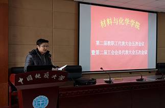 校工会副主席于荣萍宣读了“关于同意召开材化学院第二届教职工大会第五次会议暨第二届工会会员大会第五次会议”的批复文件,并传达了学校工会对材化学院教职工的殷切希望。