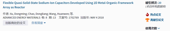 王欢文教授2018年发表在《先进能源材料》(影响因子:21.875)上的研究论文《基于二维金属有机框架作的柔性准固态钠离子电容器》(中文字幕av