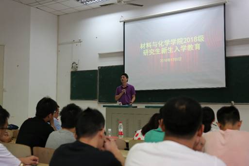 2018级研究生新生入学教育大会在化学楼一阶隆重举行。学院党委副书记黄金波、副院长田熙科,研究生秘书邹伟,研究生辅导员陈文婷以及2018级全体研究生新生参加了此次新生入学教育大会。大会由研究生辅导员陈文婷主持。