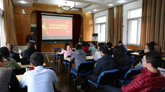 吴太山还从组织领导、教育培养、发展党员、党员管理、作用发挥、条件保障六个方面全面解读了《普通高等学校学生党建工作标准》。并要求各党支部落实教育培养的流程及具体要求,强调了党员继续教育的重要性,提倡党员教育方式创新,党员之间加强联系,要求严格遵循党员发展原则,认真落实发展程序。最后吴书记教育党员干部们积极发挥党员的先锋模范作用,要求支委委员同志们要认真负责,对工作认真、对工作有信心,对党员和入党积极分子要关心,对支部建设各项工作要信息,对支部发展要求进取心。鼓励大家要创新争优,共同努力。