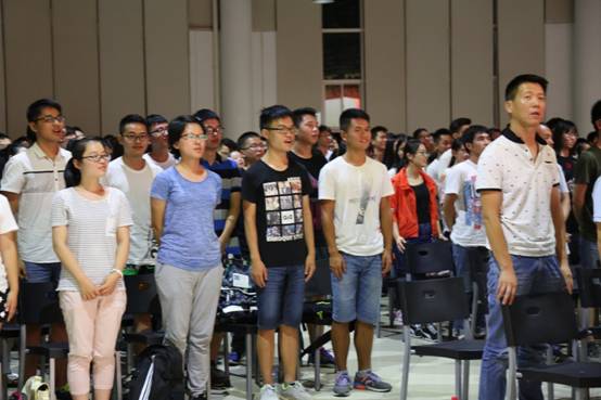 全体奏唱地大校歌《勘探队员之歌》,2017级新生开学典礼圆满结束。