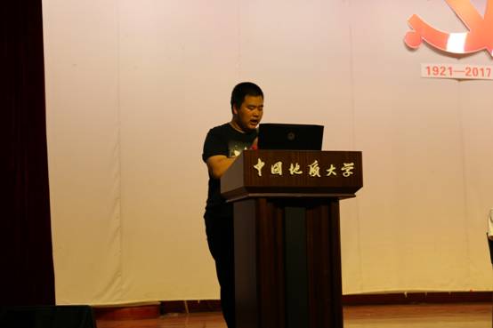 本科学生会主席韩冰发言。他回望自己初入校园的时光,与同学们分享“大学之大,非楼之大也,乃师之大也”的感悟,并以此告诫大家铭记、践行地大“艰苦朴素,求真务实”的校训。作为学长,他鼓励大家“不忘初心”,要在大学中继续为自己的理想而努力奋斗。