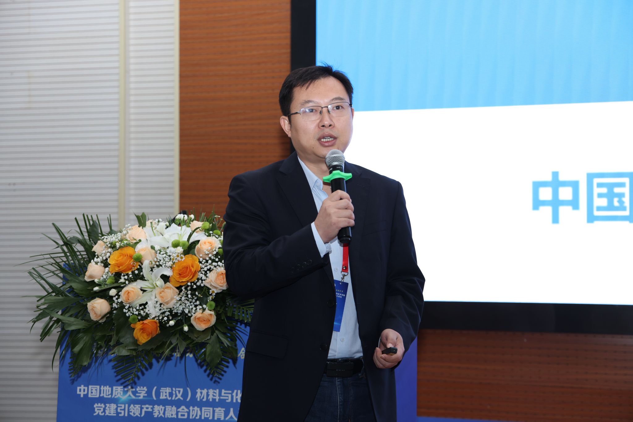 (武汉)党委常委、组织部部长、统战部部长陈文武致欢迎词。她对政校企代表的到来表示热烈欢迎。她表示,为党育人、为国育才是校政企等多方的共同责任,推进产教融合是党的二十大作出的重要部署,希望以此次论坛为契机,构筑务实的政校企常态化合作交流机制,共同为培养适应未来技术改革发展的材料与化学领域拔尖创新人才作出积极贡献。