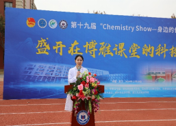 陈佳同学发言,经过一个多月的精心准备,这必将是一场精妙绝伦的化学盛宴,她希望能过通过这次展演激发同学们对化学的兴趣,“让大家明白化学并不是束之高阁的理论,它也可以生动鲜活地呈现在我们面前”。