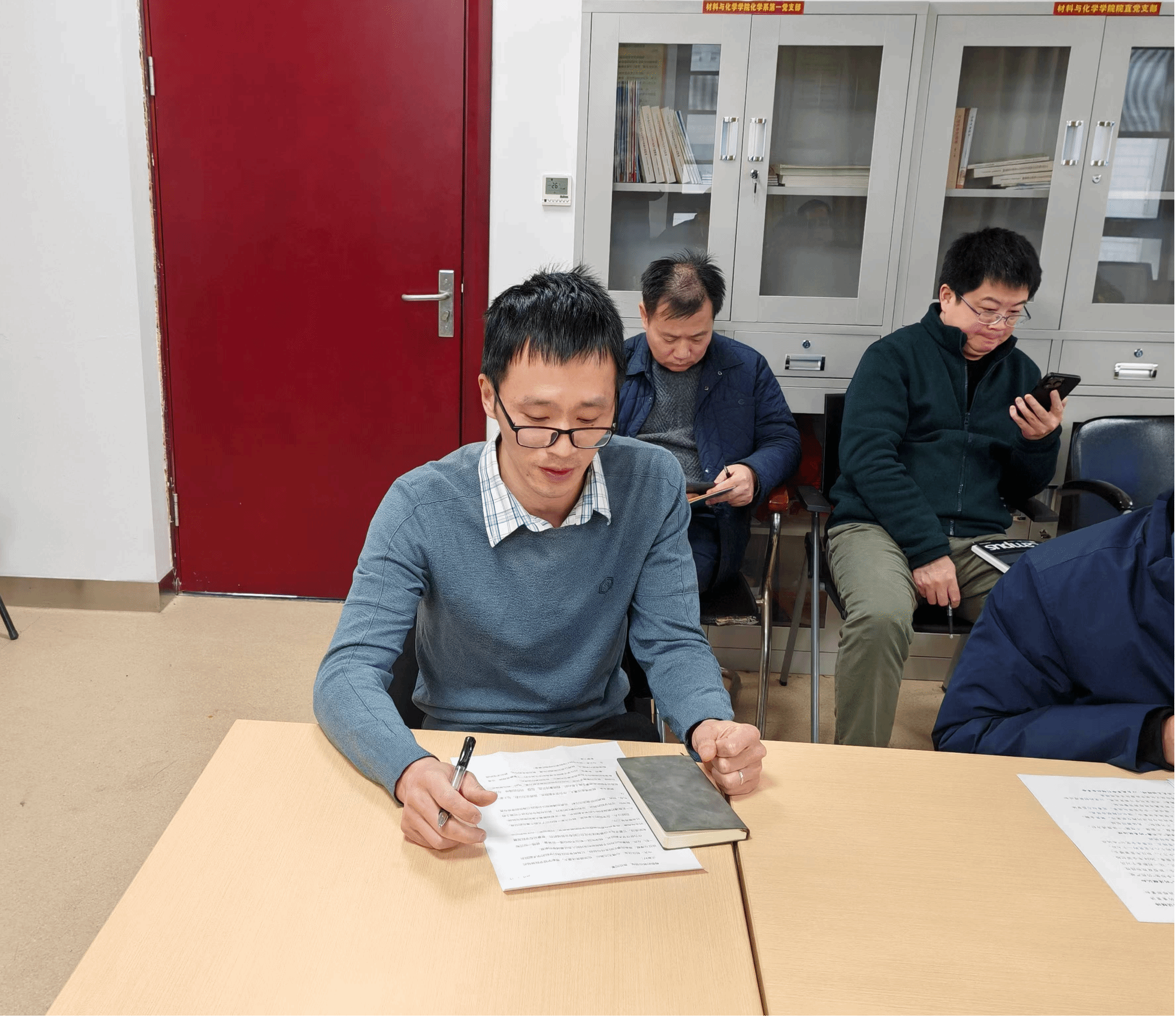 梁本哲书记做总结讲话。他表示,张孝进同志加入班子,班子力量进一步增强,希望二三级班子成员全力支持帮助张孝进同志的工作,精诚团结,互相补台补位,他希望张孝进同志迅速转换工作角色,积极投入工作,在学习实践中不断提升管理能力,以高站位高格局服务好学院建设发展。