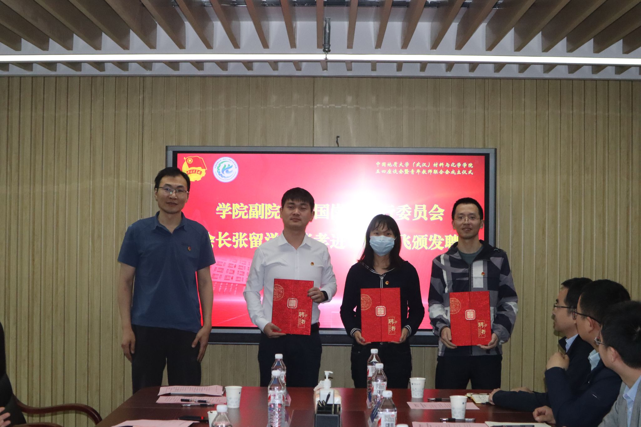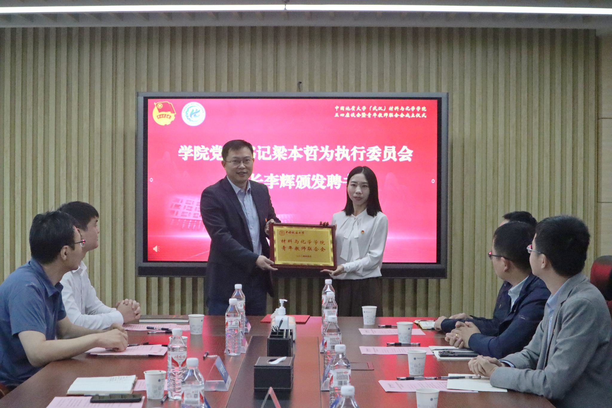 学院党委书记梁本哲为青年教师联合会授牌并颁发会长聘书,副院长李国岗、朱振利为青年教师联合会副会长、秘书长颁发聘书。