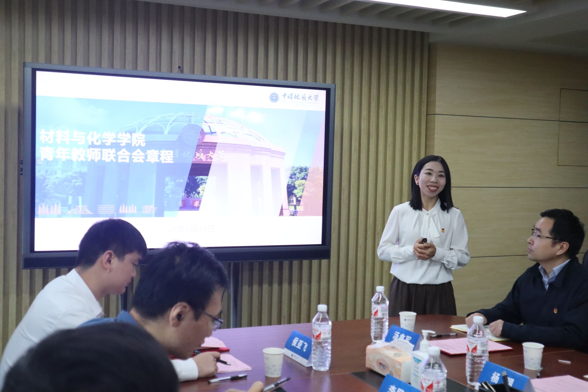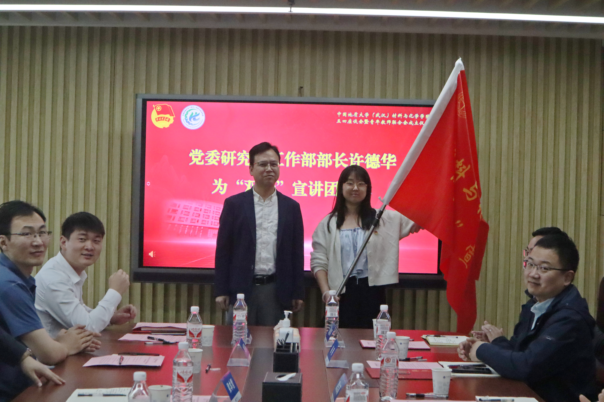 在未来城校区教学服务中心208会议室举办五四青年节师生座谈会暨青年教师联合会成立仪式。