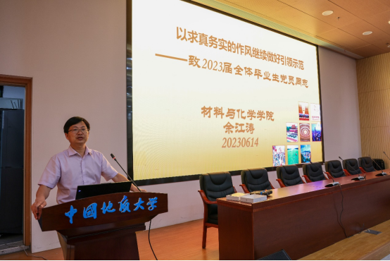 侯亚飞老师介绍了学院2023届毕业生党员的相关工作安排,并重点强调了党员档案归档、组织关系转接等工作要求。他鼓励大家积极参加“美好共留地大”的毕业生教育主题活动,他号召大家积极与学校特色地标合影留念、捐赠书籍和实验服等,鼓励优秀党员同学向低年级同学分享学习经验和心得,切实用实际行动把廉洁留地大、感动留地大、书香留地大、芳影留地大、成长留地大、清洁留地大。他希望广大毕业生党员能牢记身份,警钟长鸣,砥砺奋进,并祝福大家拥有锦绣前程。