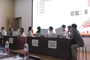 答题环节,参赛支部齐头并进,一时难分高下。其中,抢答环节采取台上选手和台下观赛支部成员相互配合的方式进行,这种新颖的方式充分调动了现场所有党员在竞赛中的参与度和积极性。